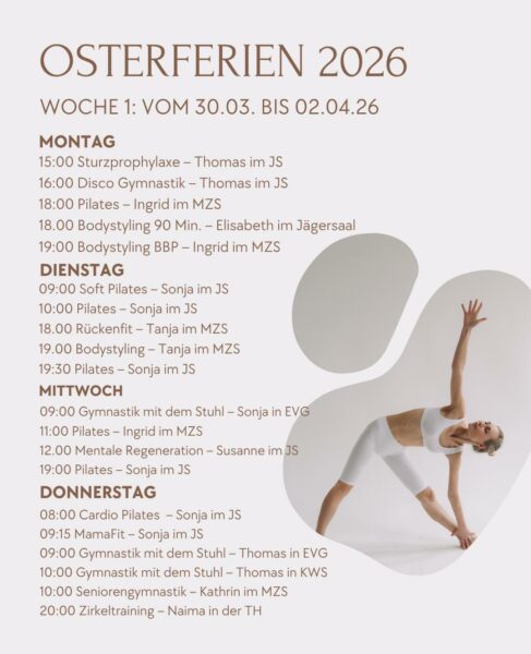 Während der Osterferien gibt es ein vom aktuellen Übungsplan abweichendes Sportangebot der Gymwelt.