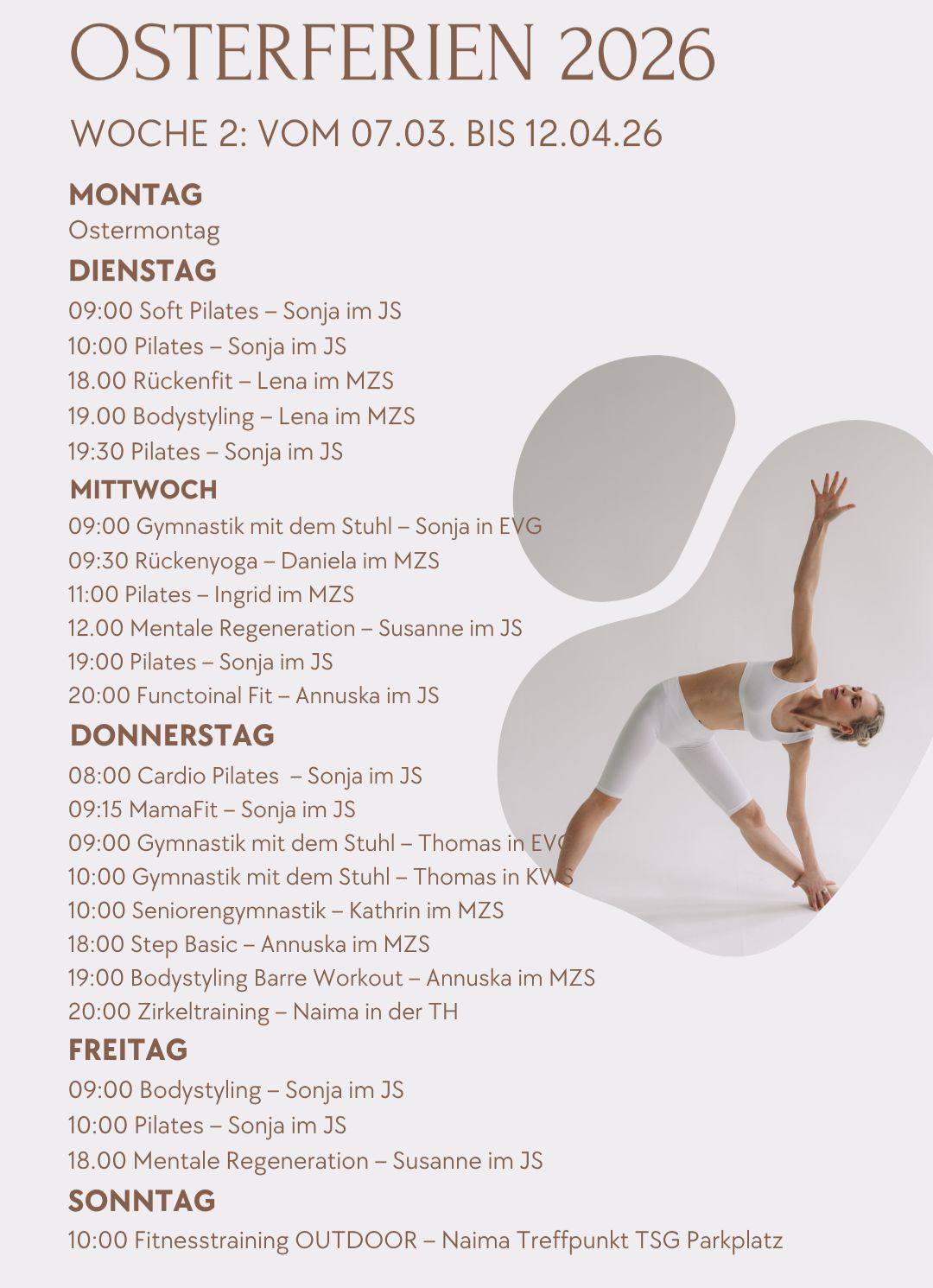 Frohe Ostern! Das Gymwelt-Angebot in der zweiten Ferienwoche. Auch in der zweiten Osterferienwoche gibt es ein vom aktuellen Übungsplan abweichendes Sportangebot der Gymwelt.